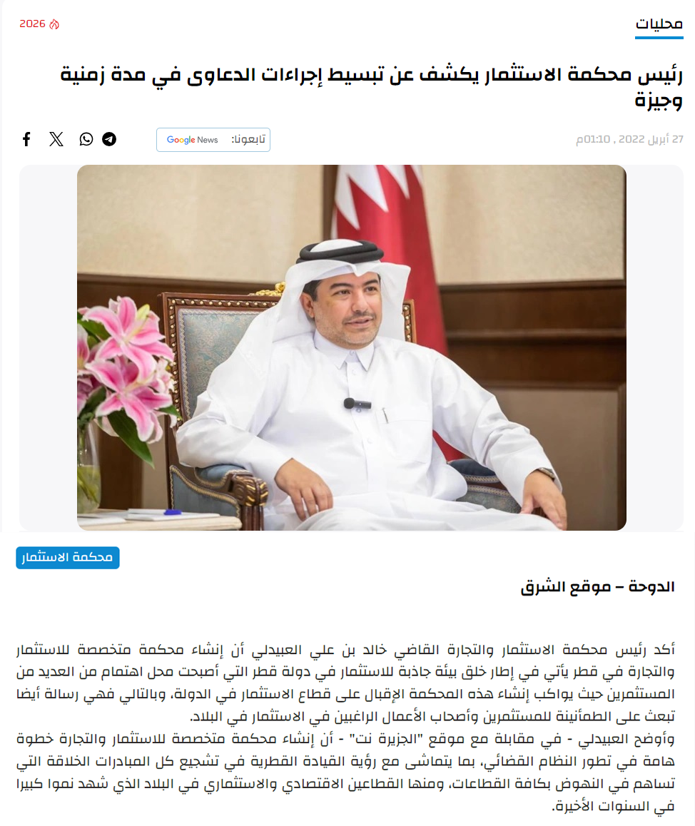 منصة قضائية متخصصة… نحو بيئة استثمارية عادلة