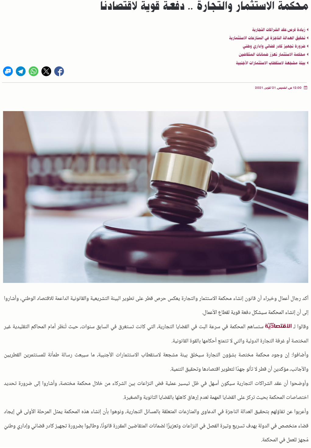 محكمة الاستثمار والتجارة .. دفعة قوية لاقتصادنا