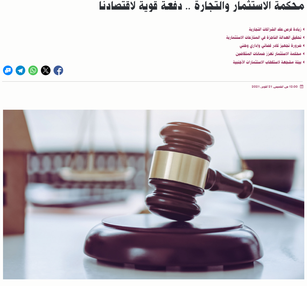 محكمة الاستثمار والتجارة .. دفعة قوية لاقتصادنا