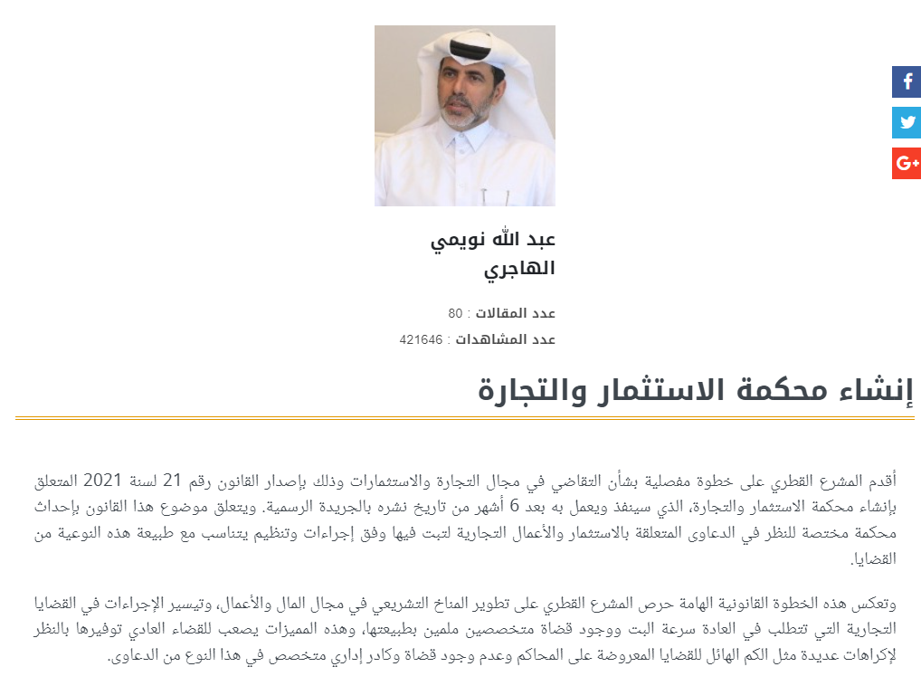خواطر قانونية.. محكمة الاستثمار والتجارة