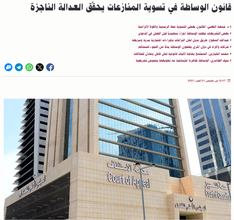 قانون الوساطة في تسوية المنازعات يحقق العدالة الناجزة