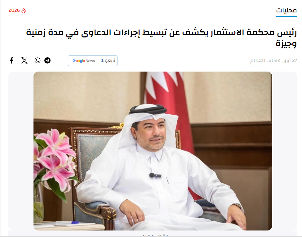 رئيس محكمة الاستثمار يكشف عن تبسيط إجراءات الدعاوى في مدة زمنية وجيزة