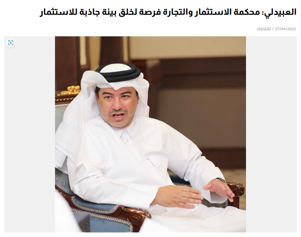 العبيدلي: محكمة الاستثمار والتجارة تخلق بيئة جاذبة للاستثمار