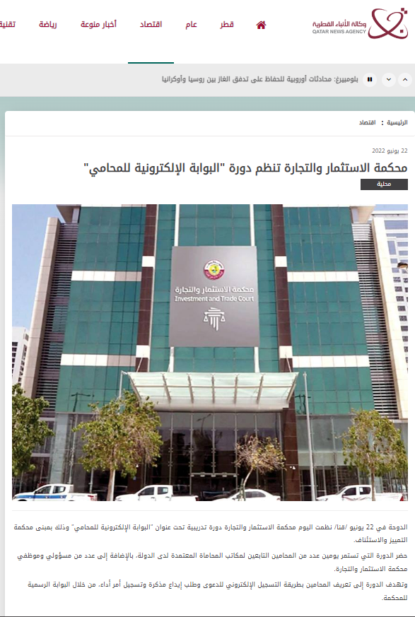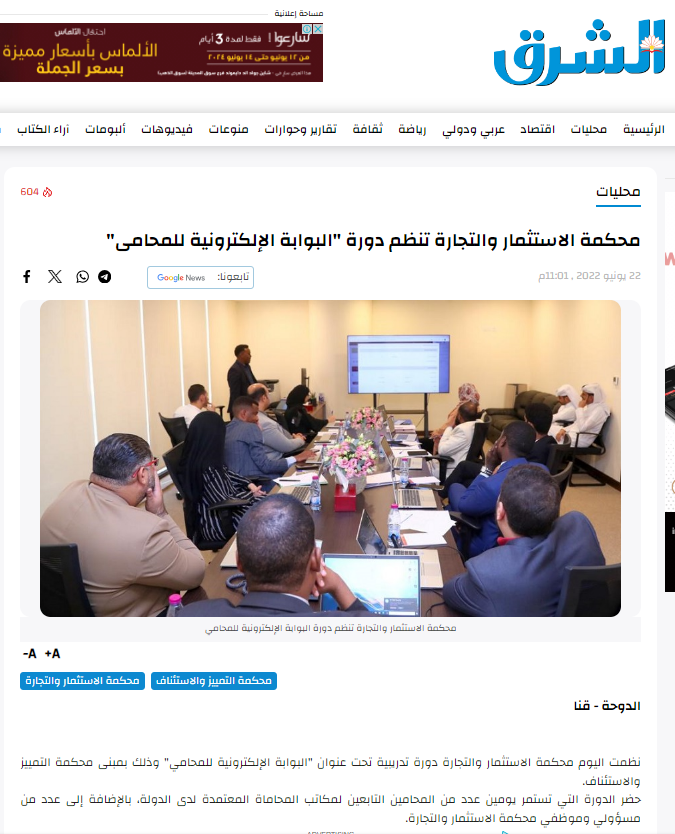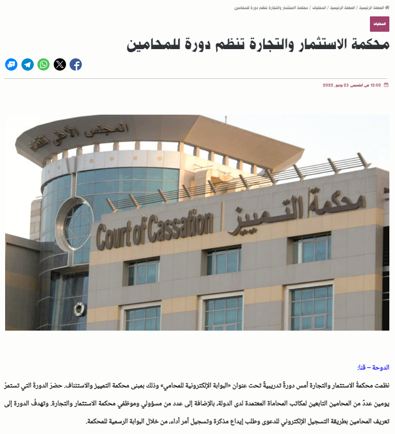 محكمة الاستثمار والتجارة تنظم دورة "البوابة الإلكترونية للمحامي