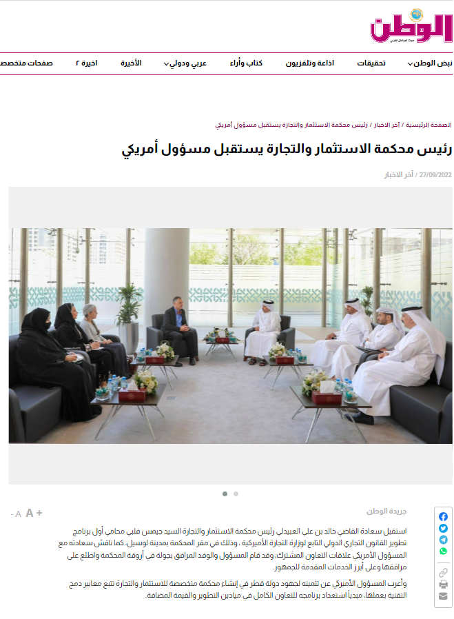 رئيس محكمة الاستثمار والتجارة يستقبل مسؤول أمريكي