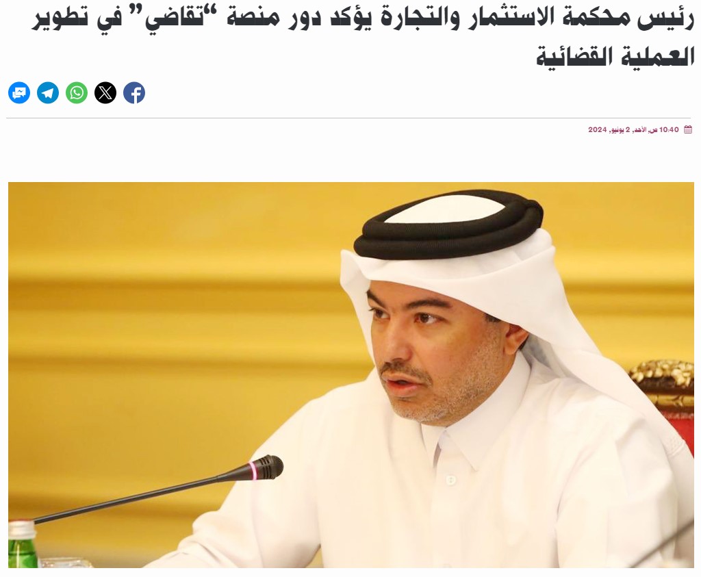 رئيس محكمة الاستثمار والتجارة يؤكد دور منصة "تقاضي" في تطوير العملية القضائية