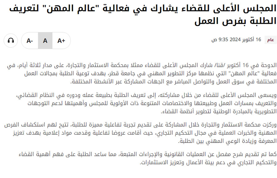 المجلس الأعلى للقضاء يشارك في فعالية "عالم المهن" لتعريف الطلبة بفرص العمل