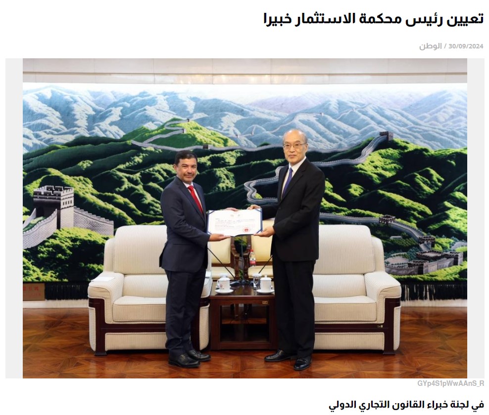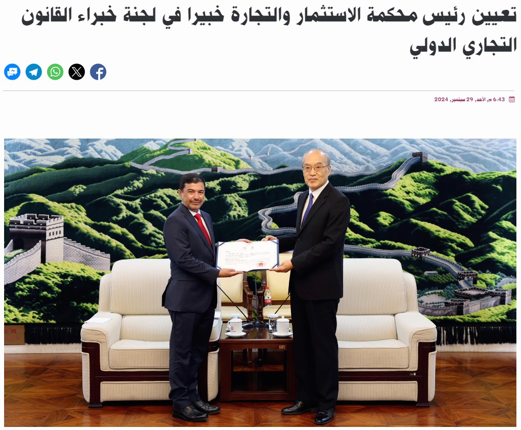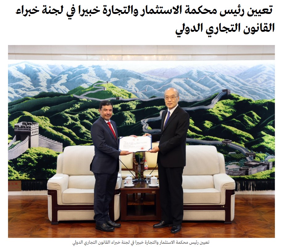 تعيين رئيس محكمة الاستثمار والتجارة خبيراً في لجنة خبراء القانون التجاري الدولي