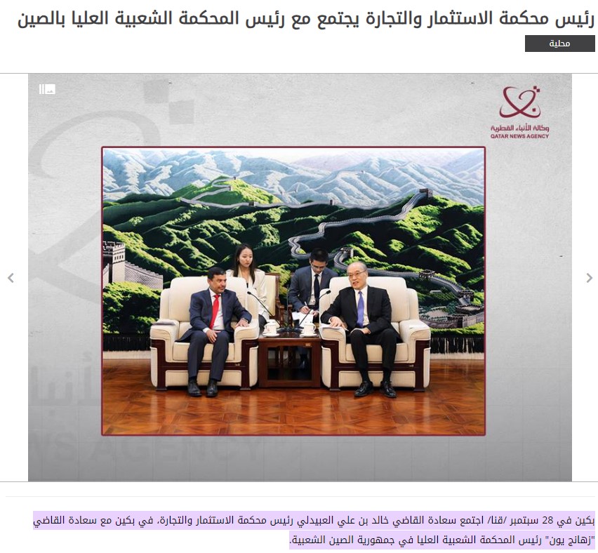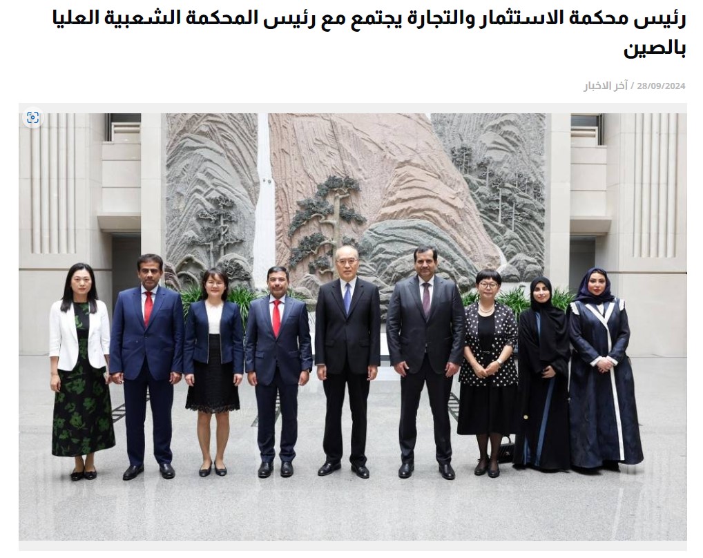رئيس محكمة الاستثمار والتجارة يجتمع مع رئيس المحكمة الشعبية العليا بالصين
