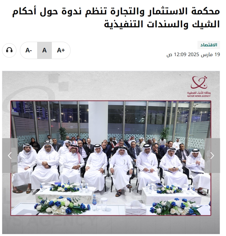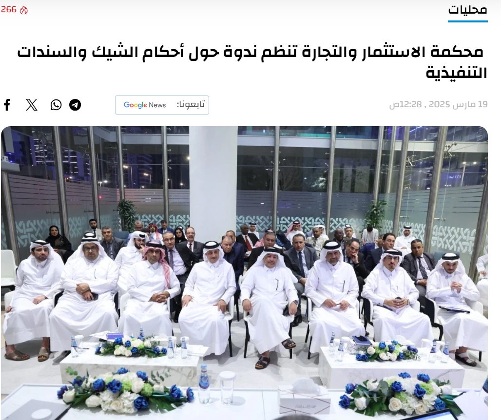 محكمة الاستثمار والتجارة تناقش أحكام الشيك والسندات التنفيذية