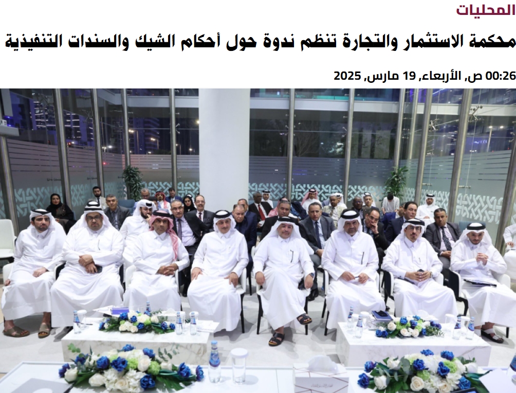 محكمة الاستثمار والتجارة تنظم ندوة حول أحكام الشيك والسندات التنفيذية