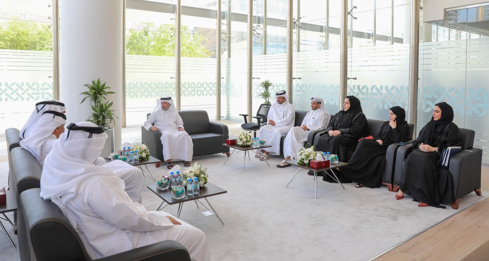 اجتماع و جولة و صوره جماعية قبل توقيع الاتفاقية بمحكمة الاستثمار و التجارة