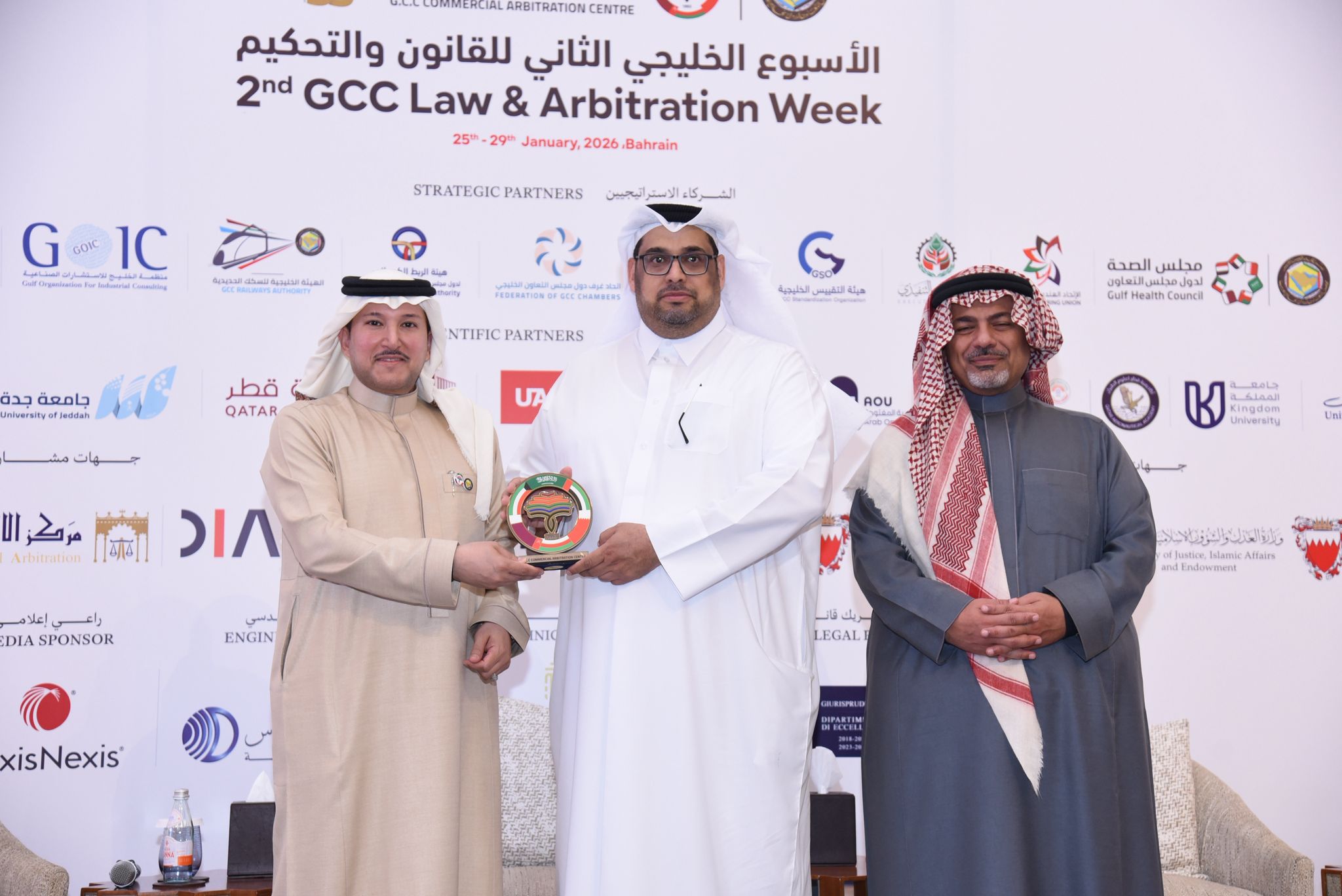 His Excellency Judge Khalid bin Ali Al Obaidli, President of the Investment and Trade Court, participated in the inauguration ceremony of the Commercial Arbitration Center in the sisterly Kingdom of Bahrain, as part of the Second Gulf Legal and Arbitration Week. The event serves as a leading regional platform for strengthening justice and arbitration systems across the Gulf Cooperation Council states.